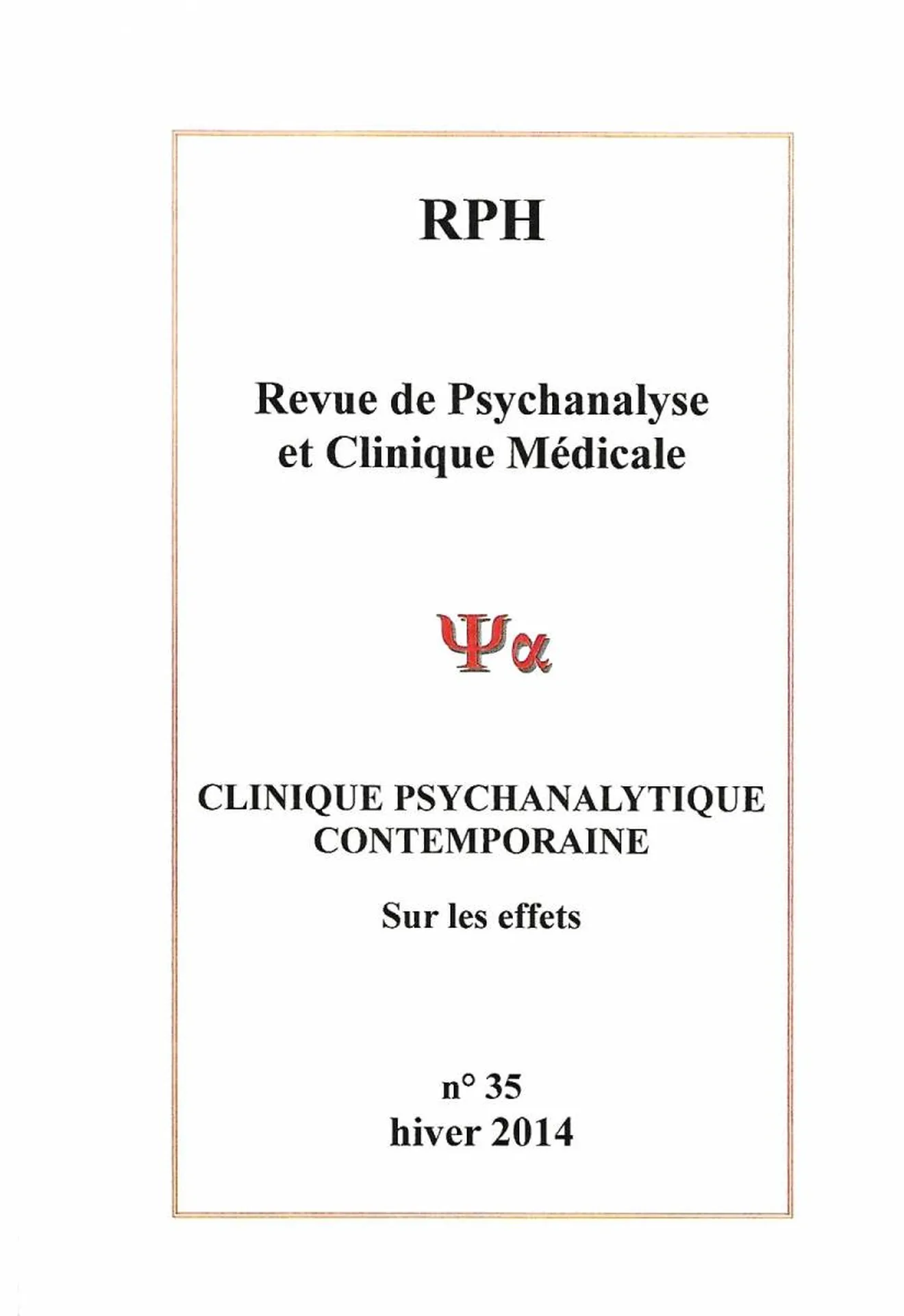 A l'automne 2014 se tenait le XXVIIe colloque du RPH, dans le 9ème arrondissement de Paris, qui poursuivait un cycle de trois colloques consacrés à la clinique psychanalytique contemporaine Intitulé Sur les effets, ce colloque a été l'occasion pour les membres cliniciens du RPH, psychothérapeutes et psychanalystes à Paris, d'apporter leur éclairage théorique et clinique à cette question.